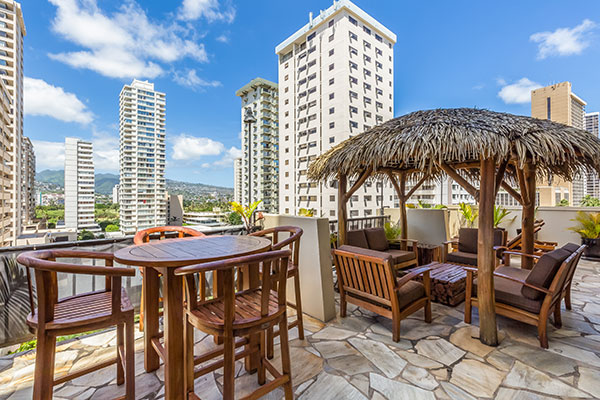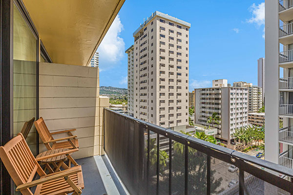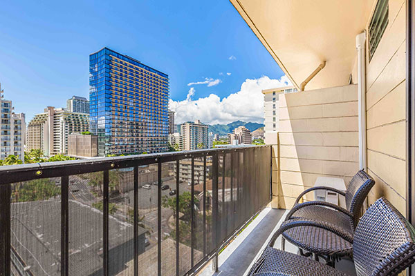活動的なおひとり様やカップルにお勧めです。専用のラナイからは活気あふれるワイキキ市街の景色を眺めます。