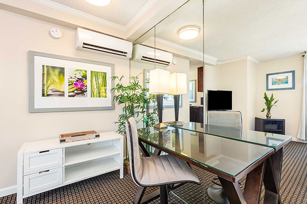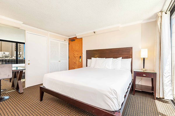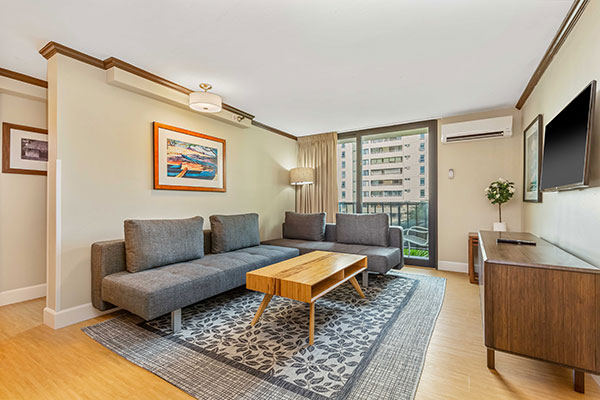 ベッドルーム1室を備え、広々としたスイートタイプの客室で、ワイキキ市街の素晴らしい眺望をお楽しみいただけます。