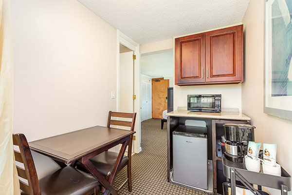 簡易キッチン付きのスタジオです。このお部屋からは、当ホテルでも最高級の眺望をお楽しみいただけます。