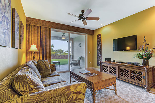 エアコンが効いた居心地のよいワイコロアの隠れ家。プライベートラナイ、フルサイズのキッチン、ランドリールーム、高速インターネット、大画面テレビのあるリビングエリアにはきっとご満足いただけることでしょう。