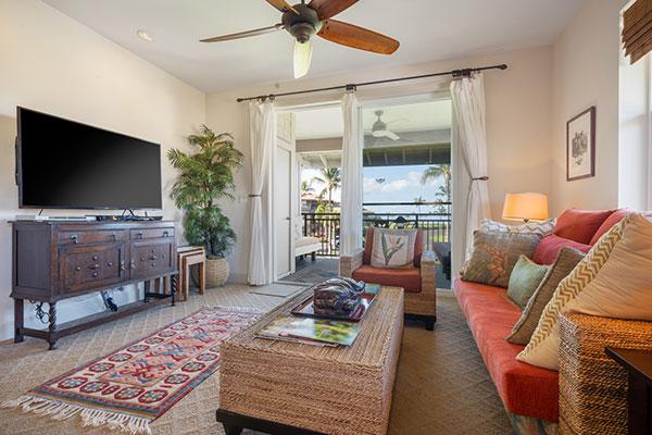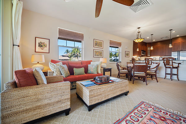 旅先にいながらご自宅のように快適なエアコンの効いたヴィラで、雄大な海の景色に浸りましょう。フルサイズのキッチン、ランドリールーム、プライベートラナイ、シーリングファン、大画面テレビ、高速インターネットなどの設備が整っています。