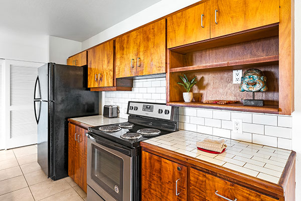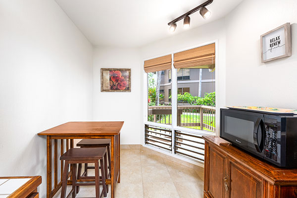プライベート ラナイ、食洗機のあるフルサイズのキッチン、高速インターネット、シーリング ファン、ケーブルテレビなどの設備が整った、1ベッドルームのお部屋です。