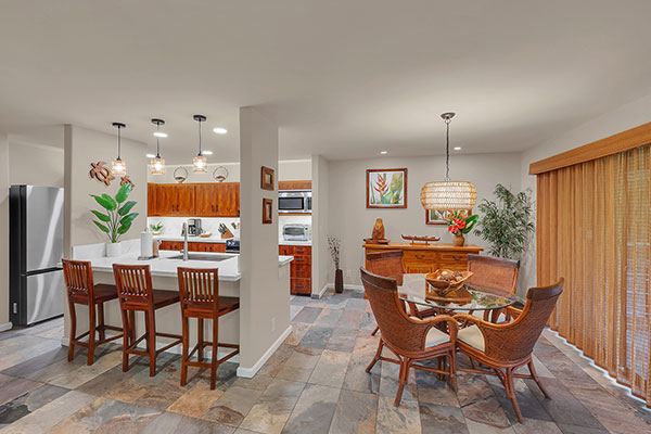 素晴らしい海の眺望とハワイらしい島の雰囲気を楽しめる2ベッドルームのお部屋です。食洗機のあるフルサイズのキッチン、ウェット バーのあるラナイ、プライベートなベッドルーム、洗濯機・乾燥機、ケーブルテレビ、無線インターネット、シーリング ファンを備えています。