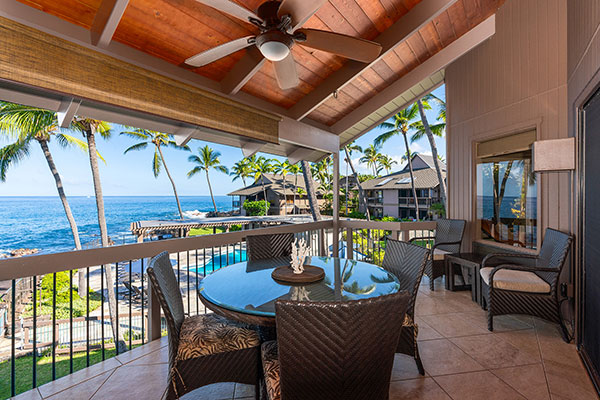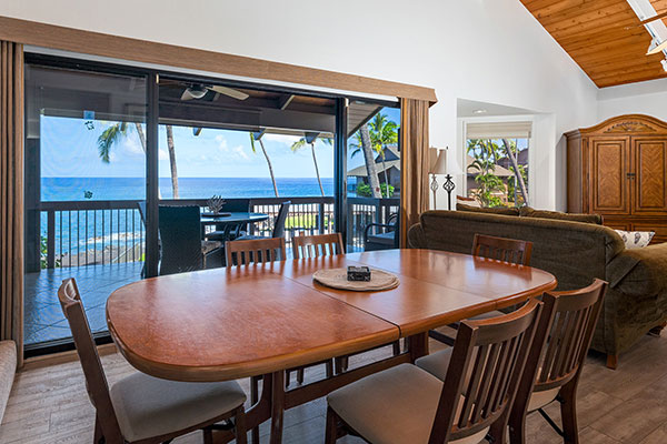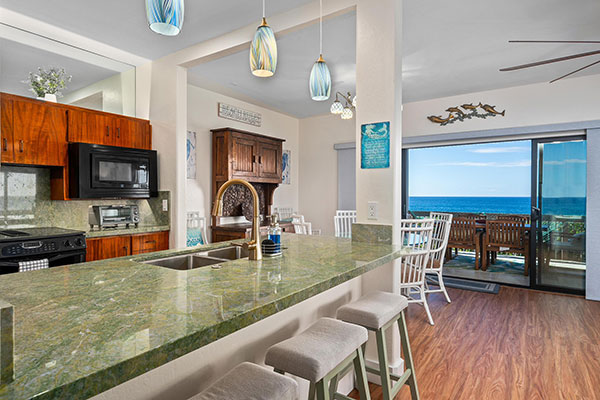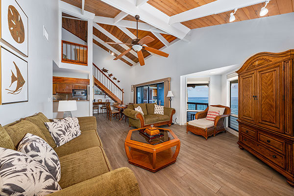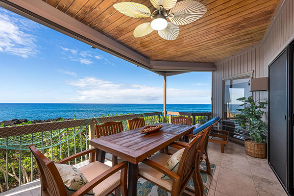 雄大な太平洋を一望できる、夢のようなオーシャン フロントの2ベッドルームのお部屋です。フルサイズのキッチン、プライベート ラナイ、洗濯機・乾燥機、無線インターネット、シーリングファンを備えています。