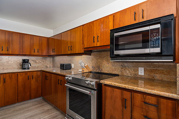 美しい海を一望できるプライベート ラナイ、フルサイズのキッチン、プライベートなベッドルーム、洗濯機・乾燥機、高速インターネット、ケーブルテレビ、シーリング ファンなどの設備が整ったお部屋です。