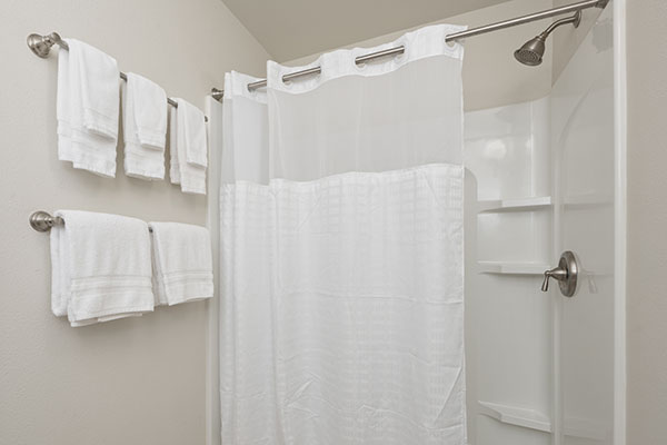 高級ビニル床材を使用した広さ29.0m²の客室は、ダブルベッド2台、フルサイズのクローゼットのほか、全面改装済みのバスタブまたはシャワー室付きバスルームを備えています。