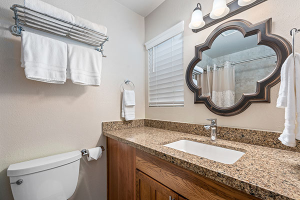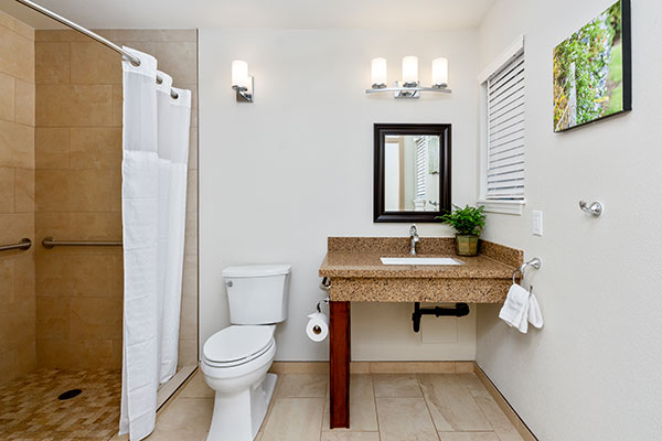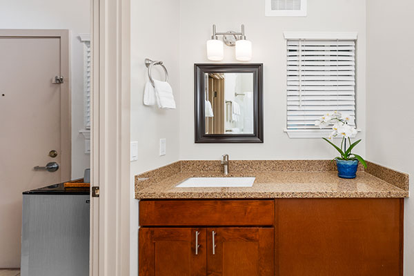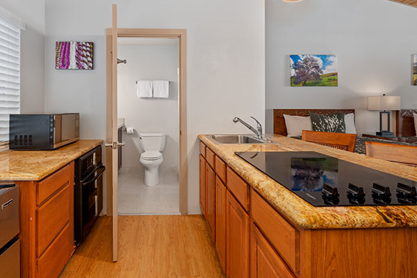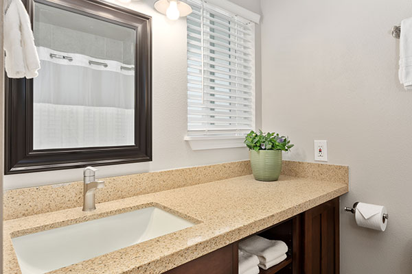 キングベッドまたはクイーンベッドが入った広々とした客室に、タイル張りのシャワー室、ハードウッドのキャビネット、クオーツカウンターを備えグレードアップしたバスルームがございます。