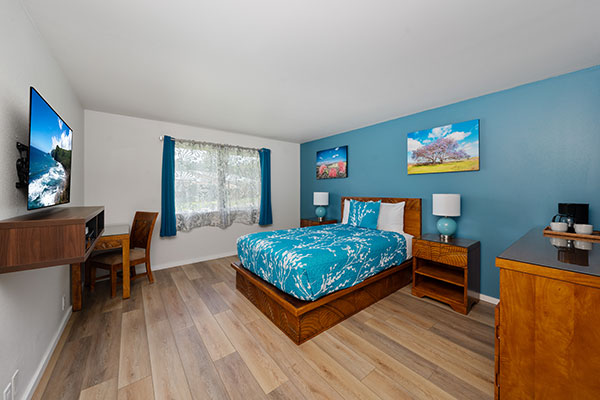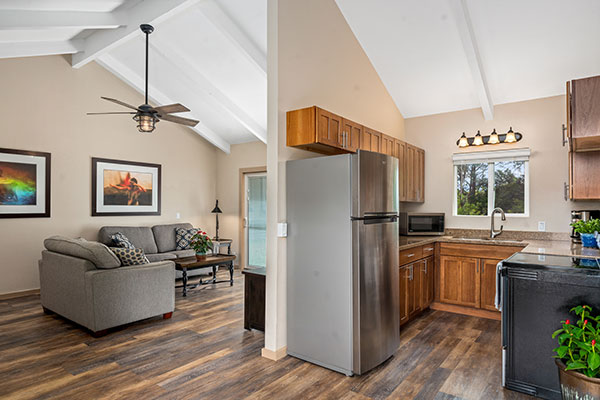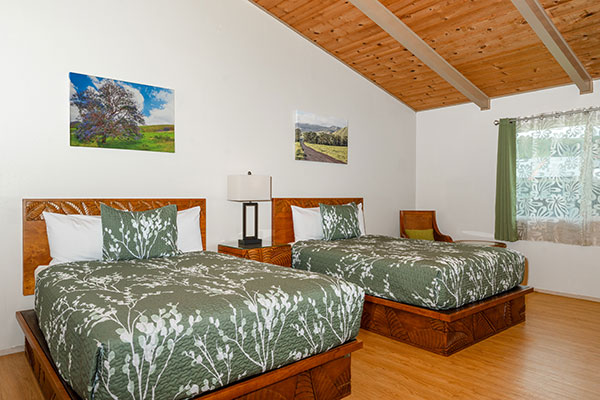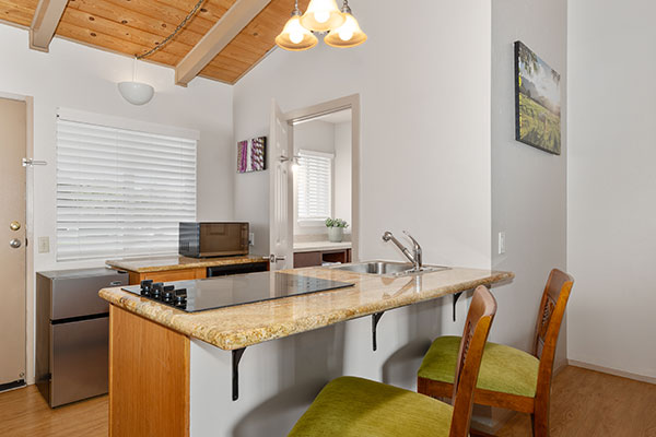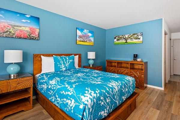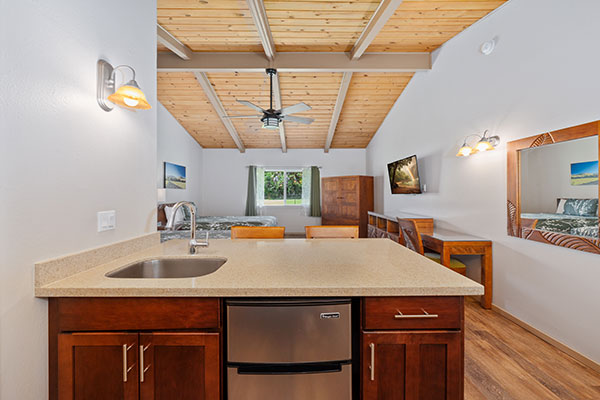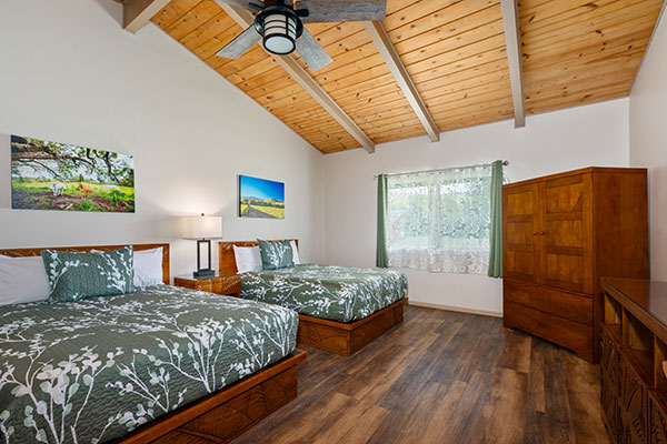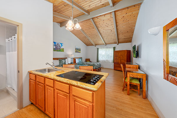 グレードアップし広々とした丸天井の客室で、クイーンベッド2台、タイル張りのシャワー室、簡易キッチン、ハワイ島をテーマにしたアートを備えています。